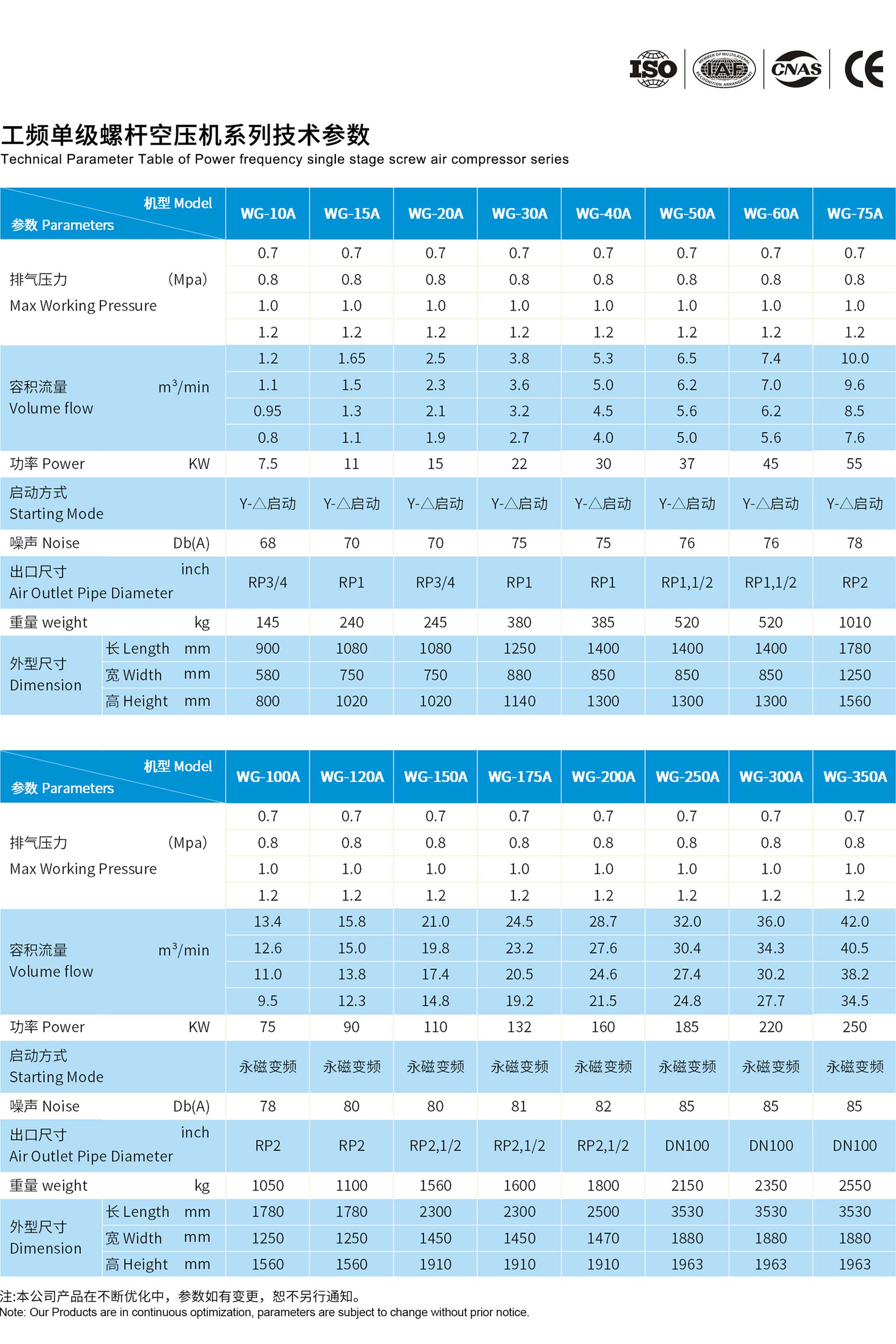 工频单级螺杆空压机系列